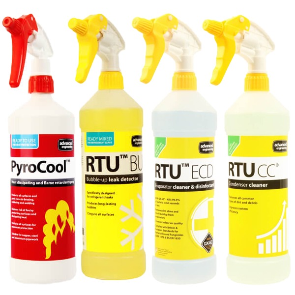 Advanced engineering specialises in the production of cleaning chemicals for commercial refrigeration equipment and air conditioning systems such as: