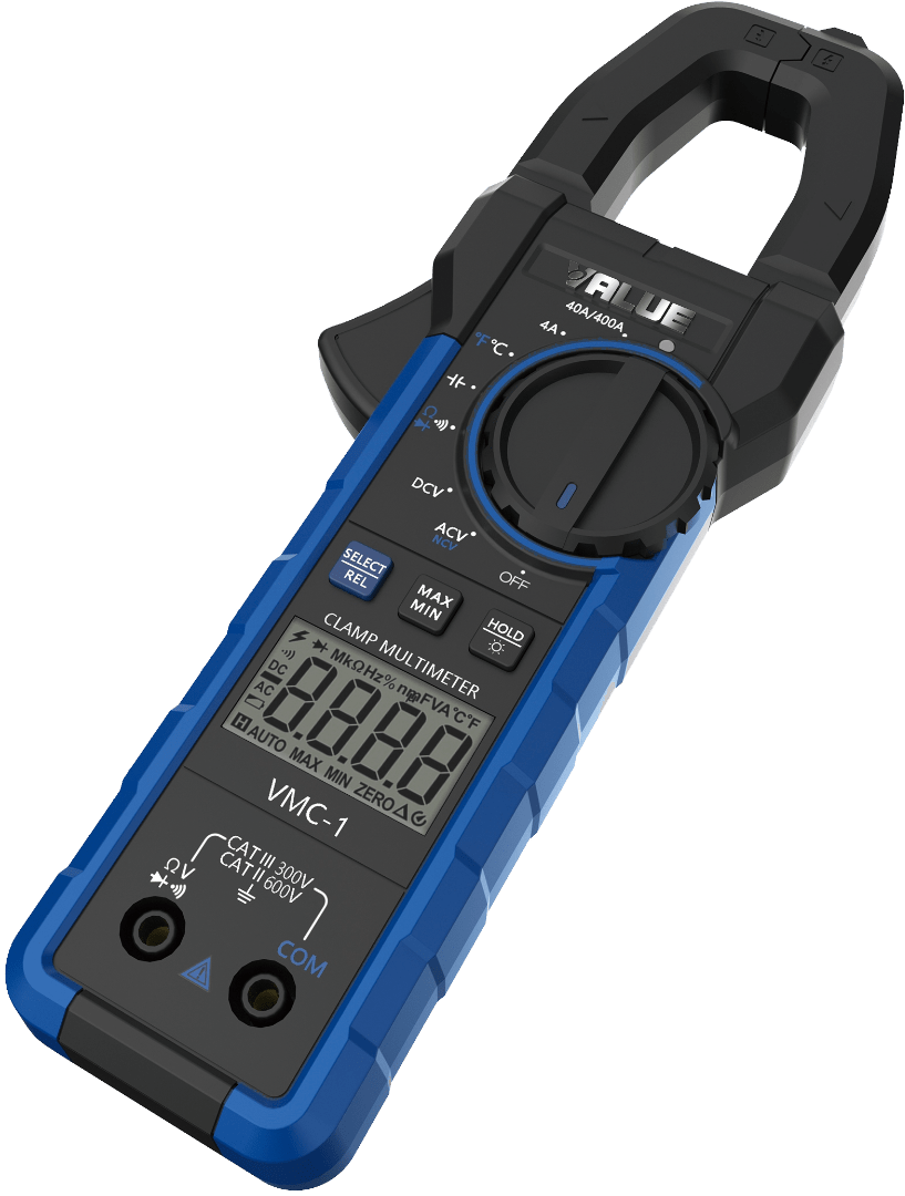 Clamp meter valid for measuring AC/DC voltage, AC current and diode resistance. The temperature is displayed in °C and °F. Valid for measuring AC/DC voltage, AC current and diode resistance.