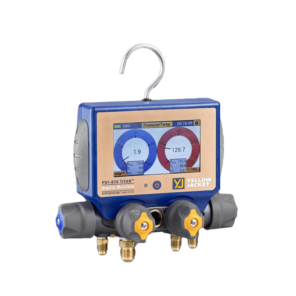 The YELLOW JACKET P51 TITAN Digital Manifold Series provides ultimate system measurements with ease. This 4-valve manifold provides fast and accurate measurements for refrigeration and a/c systems.
